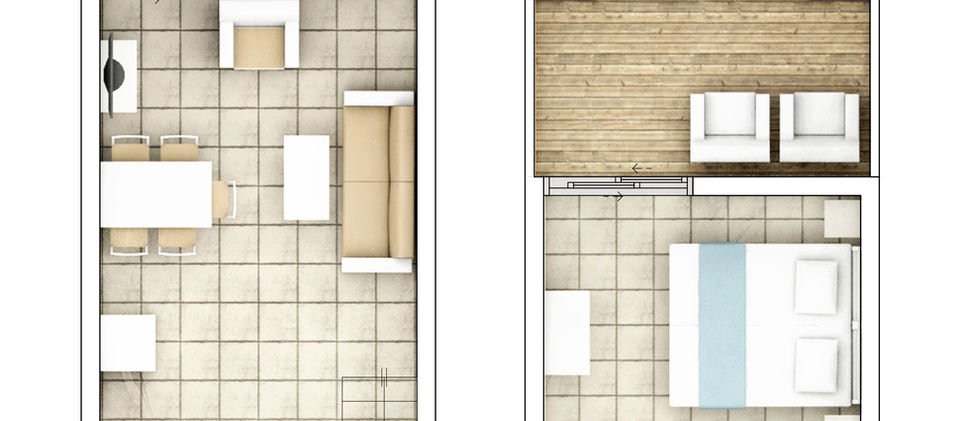 One Bedroom Apartment 45 sq.m indoor space in 2 floors and 2 terraces with 15 sq.m. outdoor space. Ideal for a family or a group of friends these large self catering apartments, are well equipped to accommodate up to 4 people. All enjoy splendid pool views over from an upper floor!